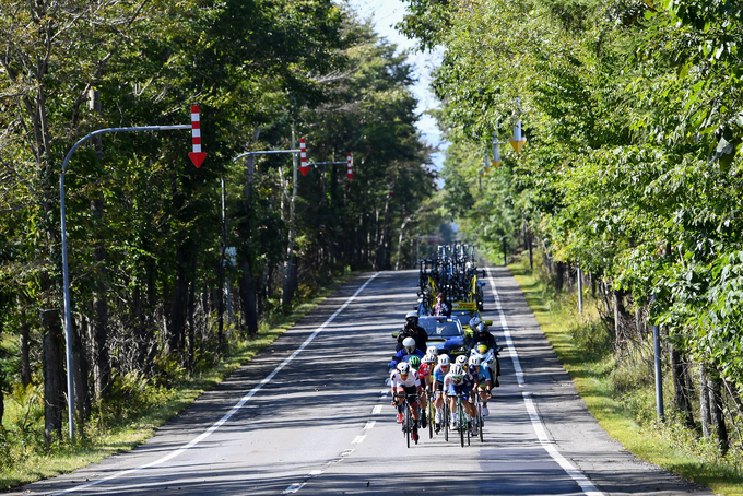 北見市のスケートリンクをスタートし、訓子府から置戸町へと平坦な道を進みます。20㎞地点ぐらいから徐々に上り基調となり、遠軽町の「金華峠」で最初の山岳ポイントを競い、遠軽町の生田原と丸瀬布でホットスポットを通過したのち、コースは再度上り基調となり今大会最後の山岳ポイントとなる「北見峠」を迎えます。北見峠を超すと一気に標高を下げ、隊列はフィニッシュとなる当麻町スポーツセンターを目指します。